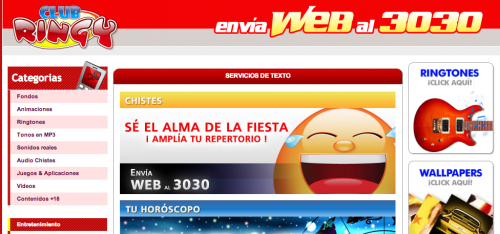 Club Ringy es otro de los servicios de clubs de descargas para celulares. El servicio se activa enviando Web al 3030 y está disponible para usuarios de Iusacell y Movistar. Al igual que todos los Club de Descarga que operan en la actualidad la suscripción al servicio es de manera indefinida mientras el usuario no cancele por lo que mientras el servicio de Club Ringy este activo es seguro que gran parte de su crédito se ira en pagar la suscripcion al club para recibir los contenidos.