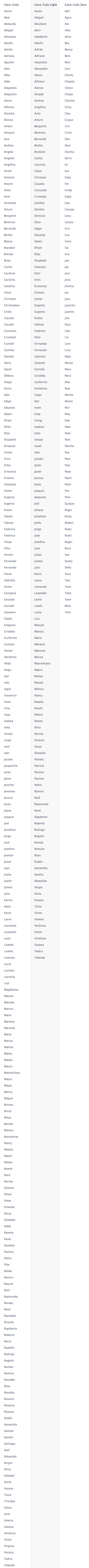 La lista de nombres de la campaña de Coca Cola es la siguiente: