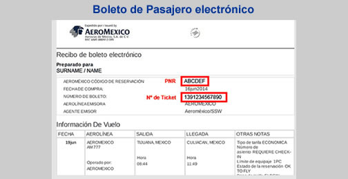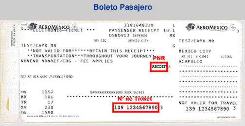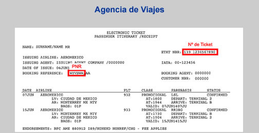 - Te indicamos donde aparece el PNR y Num Ticket del Boleto de Pasajero Electrónico de Aeroméxico.
