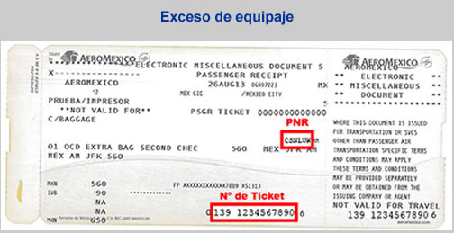 - Información con el PNR y Ticket para factura electrónica por cargos de exceso de equipaje de Aeroméxico