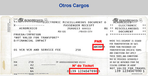 - Información con el PNR y Ticket para factura electrónica por otros cargos de Aeroméxico