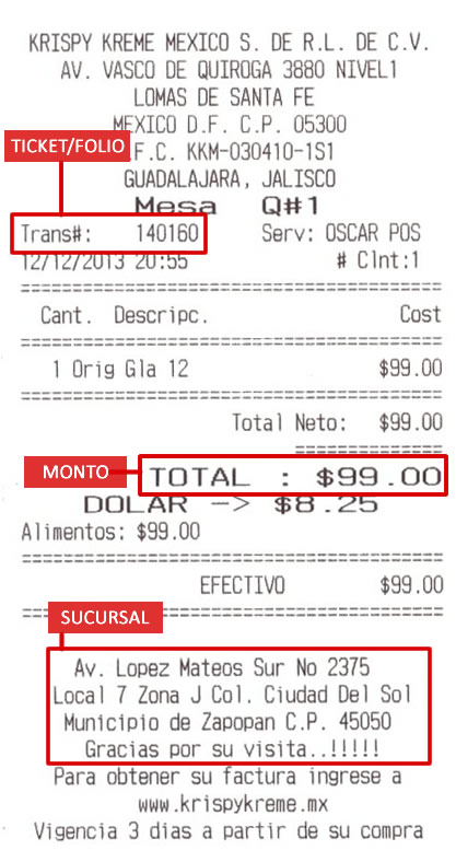 Los pasos para obtener facturas electrónicas de Krispy Kreme por Internet son los siguientes: