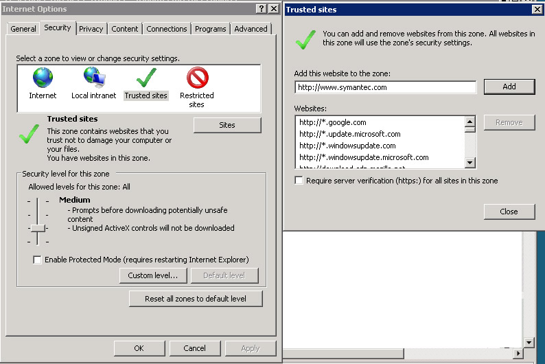 - Escoger “Sitios de Confianza” y damos clic en “Sitios”