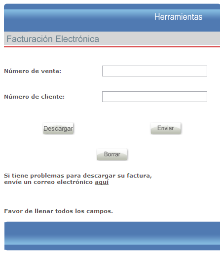 - Ya dentro del aparto de Facturación Electrónica de Estafeta nos aparecen dos campos que debemos llenar con la información que sacamos de ticket de Estafeta del paso anterior. Una vez completado el llenado de los datos tenemos dos opciones: Presionar «Descargar» para bajar un archivo ZIP con nuestra factura electrónica y XML o bien presionar «Enviar» donde se nos pedirá una dirección de e-mail para que el sistema de Estafeta nos envié ese mismo archivo ZIP con nuestra factura a la dirección de correo que indicamos.