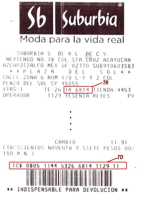 Una vez ahí lo primero que nos pide es el TR y TD del ticket de compra y posteriormente la información general como nuestro RFC y datos de facturación (si es que nunca hemos facturado). La ubicación del TR y TD en el Ticket de Bodega Aurrera y Superama debe ser es igual al del ticket de Walmart tal como lo podemos apreciar en la siguiente imagen.