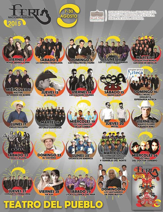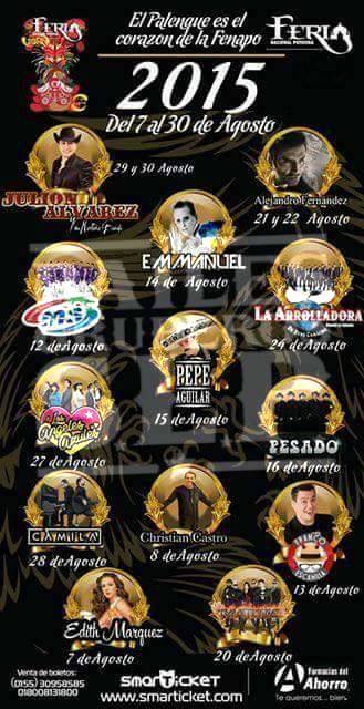 A continuación los dejamos con la cartelera de artistas en el Palenque de la FENAPO 2015: